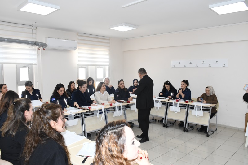 Programın öğleden sonraki bölümünde ise İzmir Açık Ceza İnfaz Kurumunda görev yapan kadın personele yönelik program düzenlendi. Kurum Müdürümüz İbrahim ARLI’nın katılımıyla gerçekleştirilen programda, kurumun Tekstil Atölyesinde 8 Mart Dünya Kadınlar Günü’ne özel olarak üretilen hediye çantalar ve karanfiller kadın personele takdim edildi. Programda konuşma yapan Kurum Müdürü İbrahim ARLI, kadınların toplumsal hayatın her alanında üstlendikleri önemli rollerin altını çizerek, eğitimli ve gelişmiş bir toplumun temelinde eğitimli ve güçlü kadınların yer aldığını ifade etti. Kadınların sosyal, ekonomik ve kültürel yaşamın vazgeçilmez bir parçası olduğunu belirten ARLI, kadın emeğinin ve katkısının toplumun gelişimi açısından büyük önem taşıdığını vurguladı.